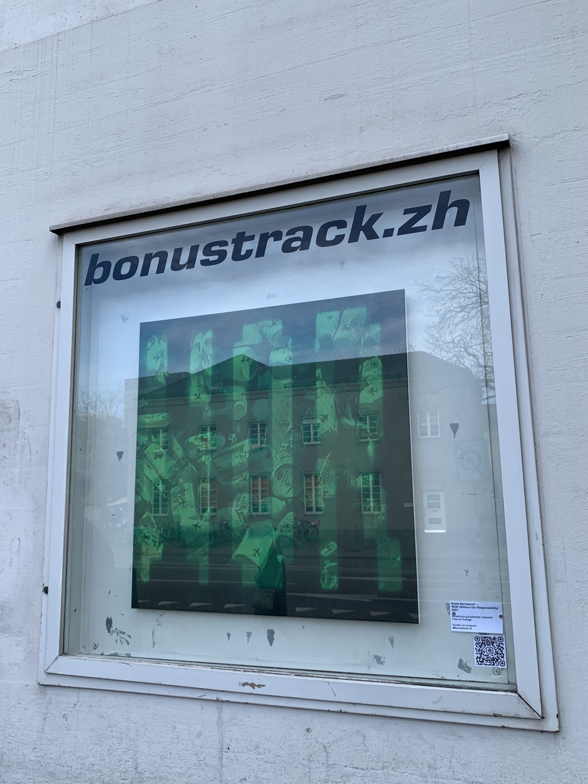 Guido Bernasconi (né à Fleurier-NE) est un artiste suisse contemporain qui s’intéresse à l’impact de la technologie sur la société et le rôle du langage et des médias dans la formation de notre compréhension du monde. Ce tableau montre, en jouant sur les questions d’échelle, son engagement pour les questions qui ont trait aux enjeux climatiques et aux impacts de la pollution en général ici, plus particulièrement en ce qui concerne le plastic. Cette oeuvre met également en évidence les contraintes liées au monde digital au travers de l’allitération (Without Our Responsability) qui résonne comme le mot WAR, dont la calligraphie en mode pixel occupe la totalité de l’espace de la toile.